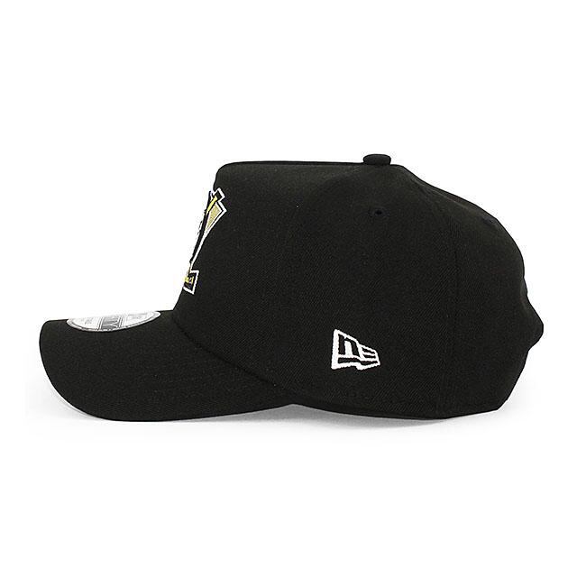 フロントにNHL / ホッケーリーグのアナハイム ダックスのチームロゴ、左サイドにNEフラッグロゴ、右サイドに30周年記念のサイドパッチが刺繍されたモデル。
