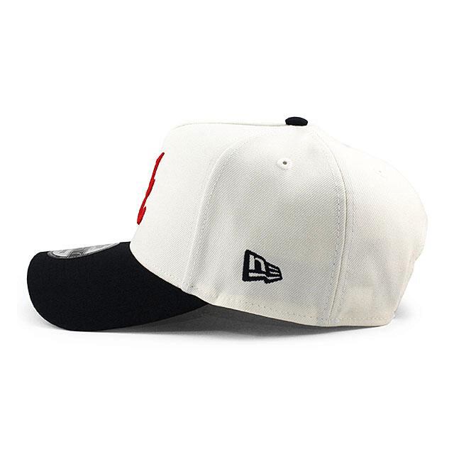 フロントにMLB / メジャーリーグのアトランタ ブレーブスのチームロゴ、左サイドにNEフラッグロゴ、右サイドに1995年ワールドシリーズパッチが刺繍されたモデル。