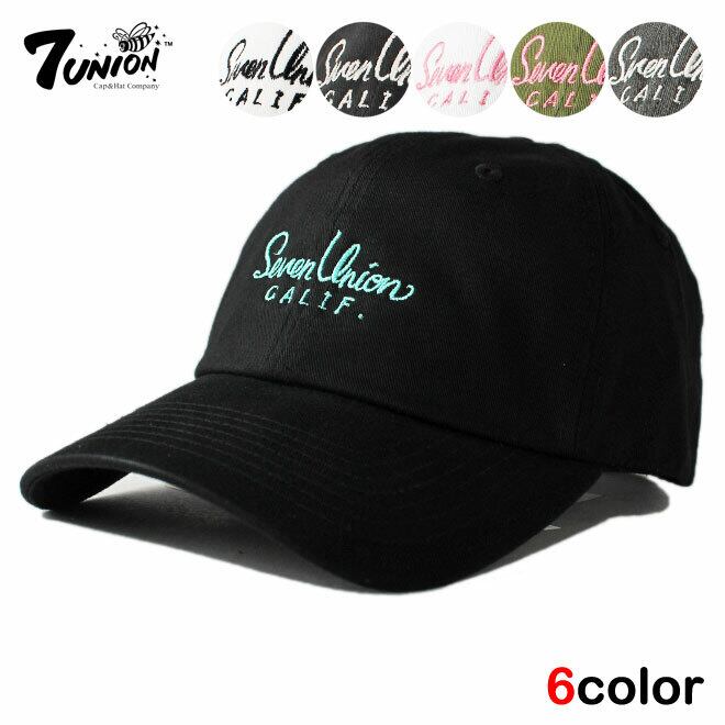 フロントに小振りにSevenUnion CALIF.を刺繍で表現したシンプルなデザインのロープロファイルキャップ。