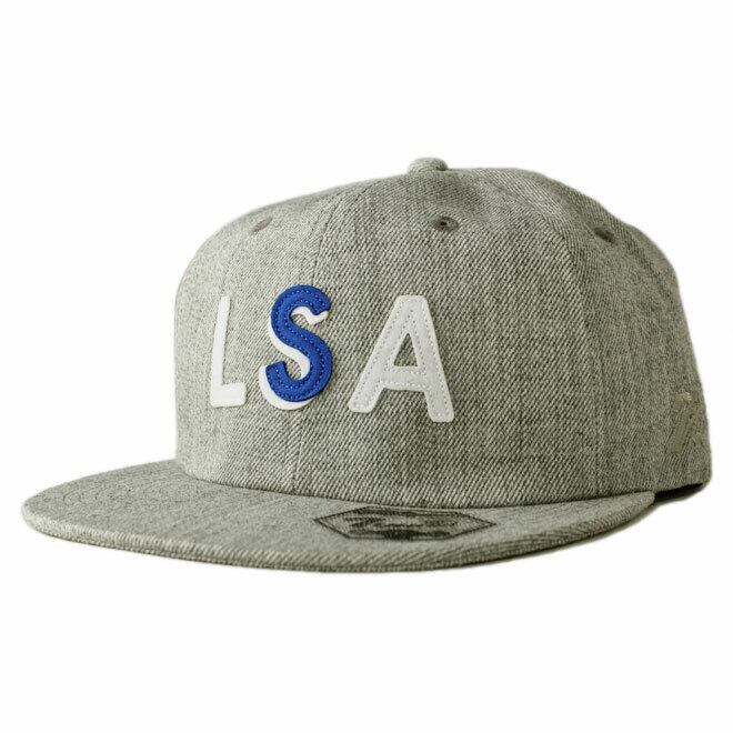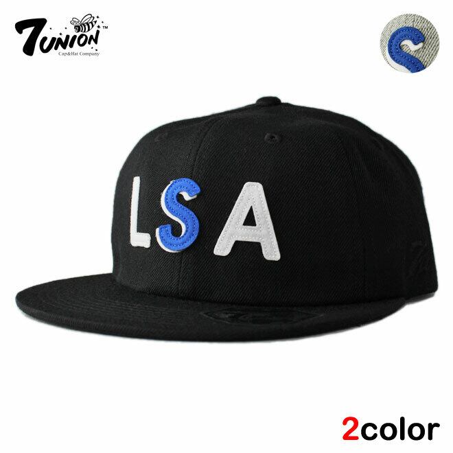 フロントにLAと7ユニオンのSのフェルト、左サイドにブランドロゴ、バックにブランドロゴと1箇所のみのアイレットに星が刺しゅうされたストラップバックキャップ。