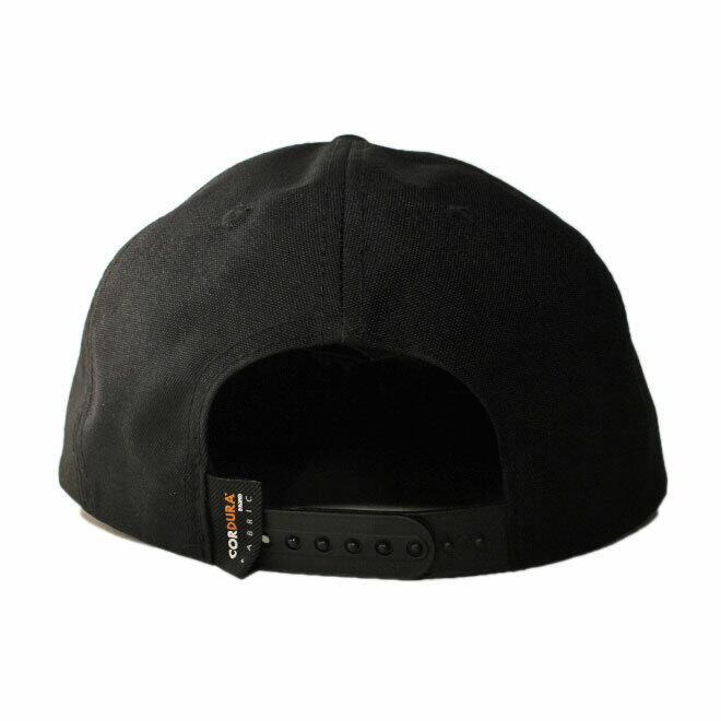フロントにコーデュラロゴをサンプリングしたオマージュ的なロゴ、左サイドにブランドロゴを刺繍したスナップバックキャップ。