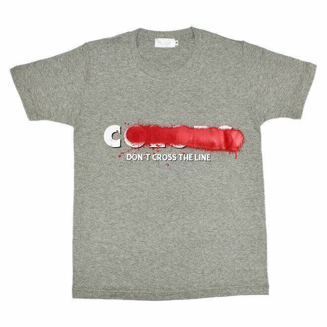 硬派なメッセージと共にロゴ部分の厚盛りのプリントとスプレーで表現されている。