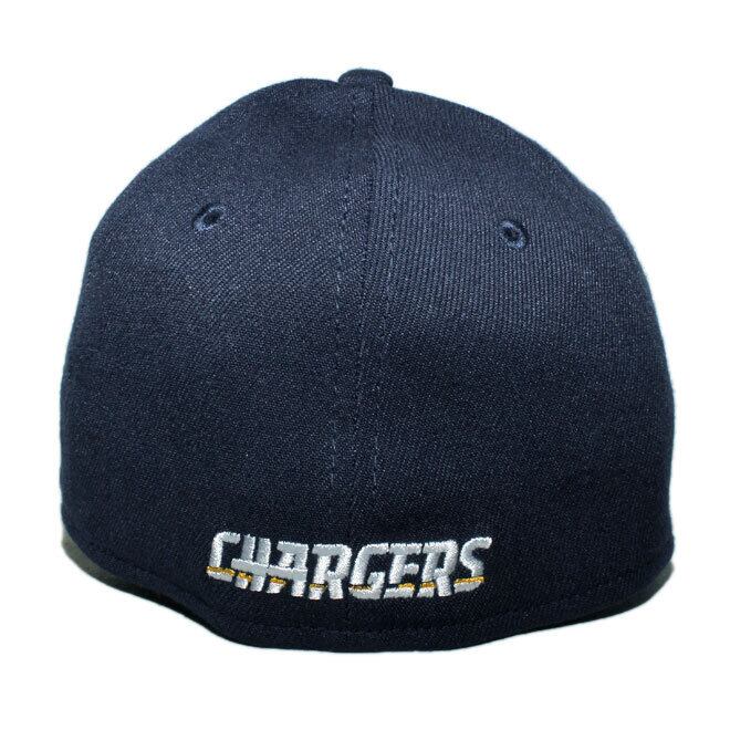 フロントにNFLのロサンゼルス チャージャーズのチームロゴ、左サイドにNEフラッグロゴ、バックにもチームロゴが刺繍されたモデル。