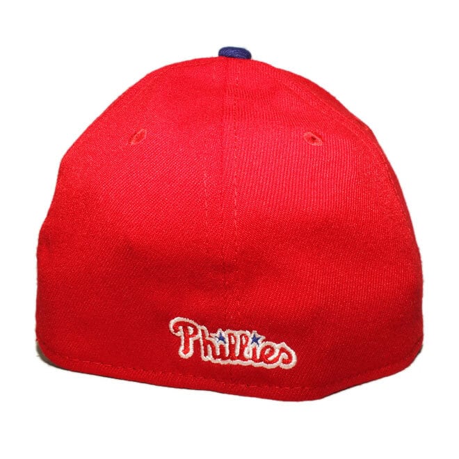 フロントにMLBのフィラデルフィア フィリーズのチームロゴ、左サイドにNEフラッグロゴ、バックにもチームロゴが刺繍されたモデル。