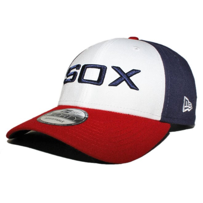 フロントにMLBのシカゴ ホワイトソックスのチームロゴ、左サイドにNEフラッグロゴ、バックのストラップ部分にもチームロゴネームが刺繍されたモデル。