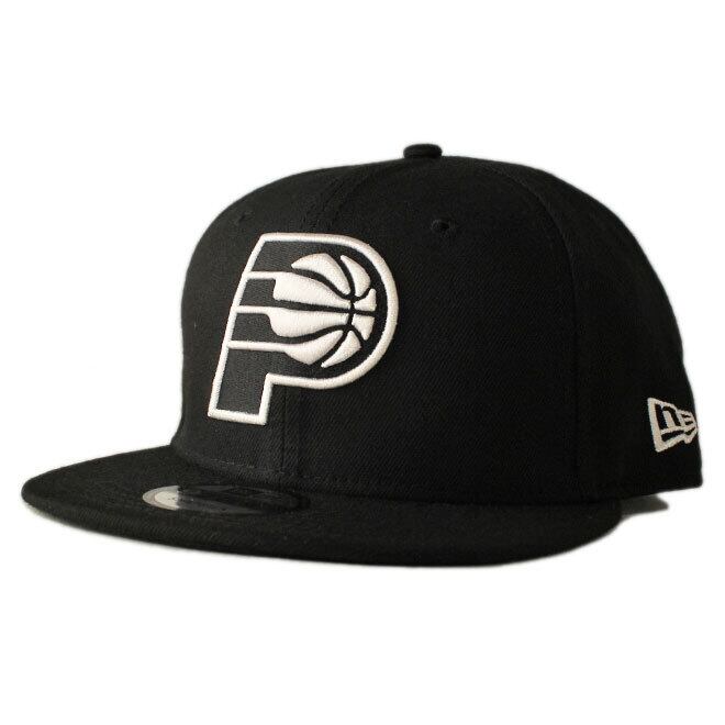 フロントにインディアナ ペイサーズのチームロゴ、左サイドにNEW ERAロゴが刺繍されたスナップバックキャップ。