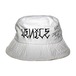 フロントとバックに手書きのモチーフと文字がプリントされたバケットハット。