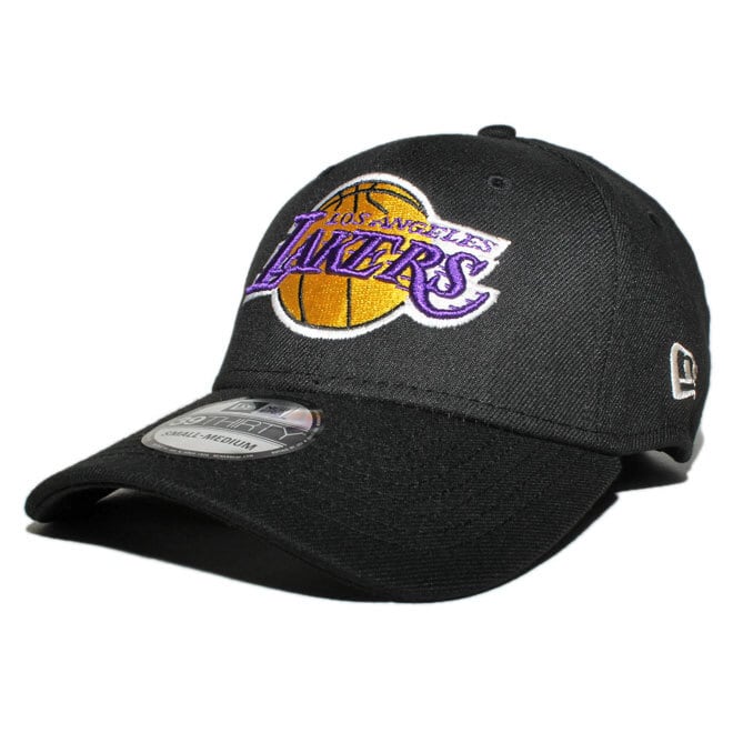 フロントにNBAのロサンゼルス レイカーズのチームロゴ、左サイドにNEフラッグロゴ、バックにNBAロゴが刺繍されたモデル。