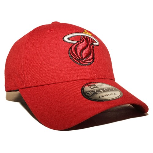 フロントにNBAのマイアミ ヒートのチームロゴ、左サイドにNEフラッグロゴ、バックのストラップ部分にチームネームが刺繍されたモデル。