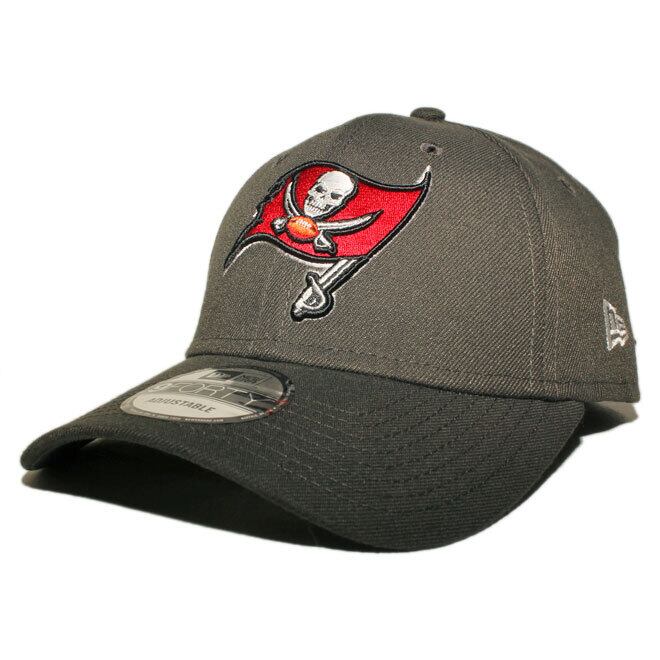 フロントにNFL / アメリカンフットボールリーグのタンパベイ バッカニアーズのチームロゴ、左サイドにNEフラッグロゴ、バックに小ネームが刺繍されたモデル。