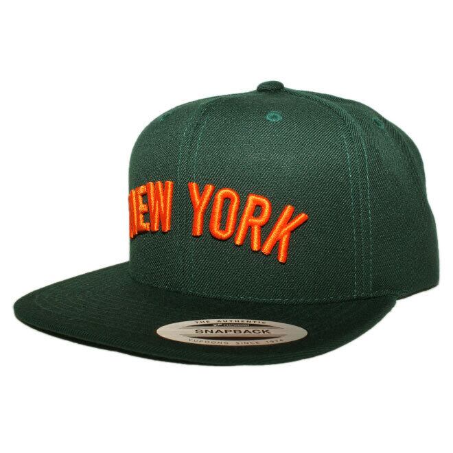 フロントにニューヨークのアーチロゴが刺繍されたスナップバックキャップ。