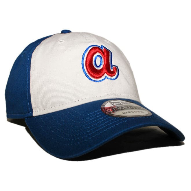 フロントにMLB クーパーズタウンのアトランタ ブレーブスのチームロゴ、左サイドにNEフラッグロゴが刺繍されたモデル。