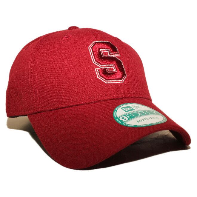 フロントにNCAA / 全米大学体育協会のスタンフォード カージナルのチームロゴ、左サイドにNEフラッグロゴ、バックにもチームロゴが刺繍されたモデル。