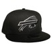 フロントにNFL / アメリカンフットボールリーグのバッファロー ビルズのチームロゴ、左サイドにNEフラッグロゴが刺繍されたスナップバックキャップ。