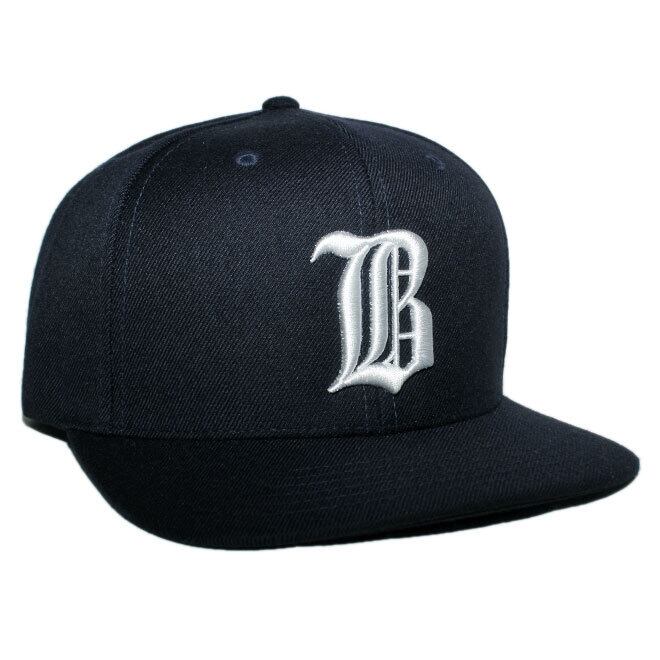 フロントに架空チームBONKERS「狂ったように熱狂する輩」の頭文字、左サイドに某チーム風のBONKERSが刺繍されたスナップバックキャップ。