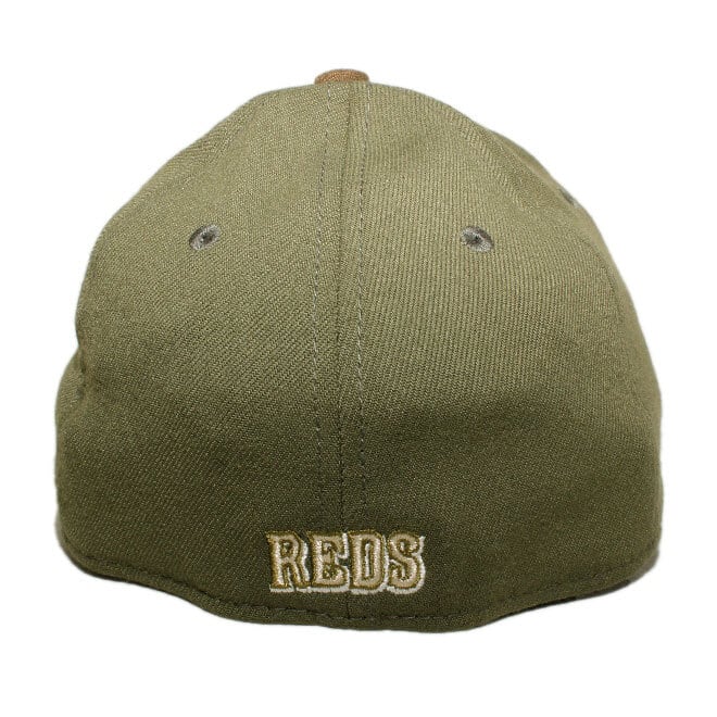 フロントにMLB / メジャーリーグのシンシナティ レッズのチームロゴ、左サイドにNEフラッグロゴ、バックにチーム名が刺繍されたモデル。