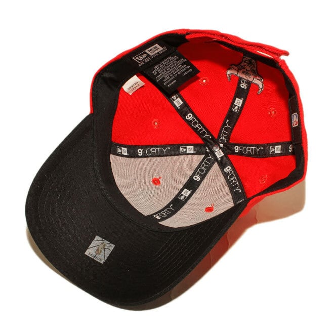 フロントにNBA / バスケットボールリーグのシカゴ ブルズのチームロゴ、左サイドにNEフラッグロゴ、バックにもチームロゴが刺繍されたモデル。