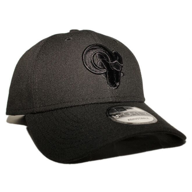 フロントにNFL / アメリカンフットボールリーグのロサンゼルス ラムズのチームロゴ、左サイドにNEフラッグロゴが刺繍されたモデル。
