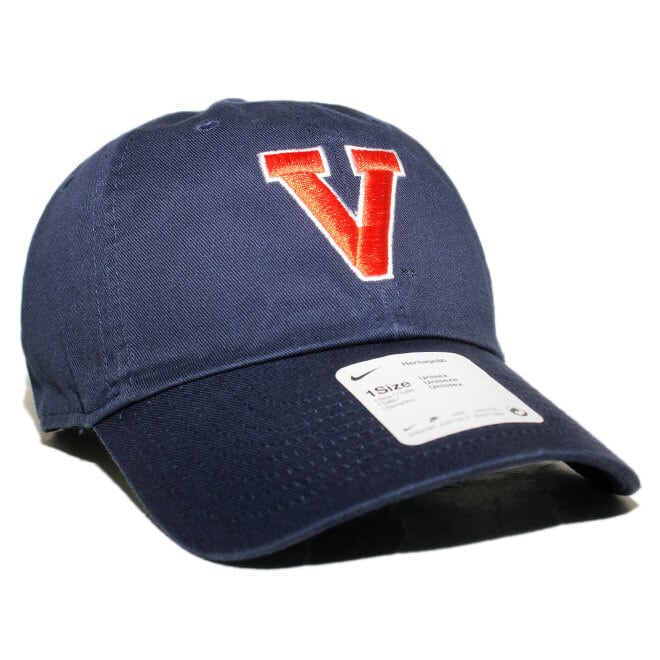 フロントにNCAA / 全米大学体育協会のヴァージニア キャバリアーズのチームロゴ、左サイドにスウッシュロゴが刺繍されたストラップバックキャップ。