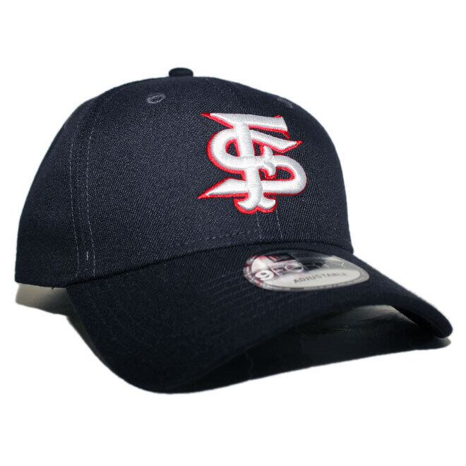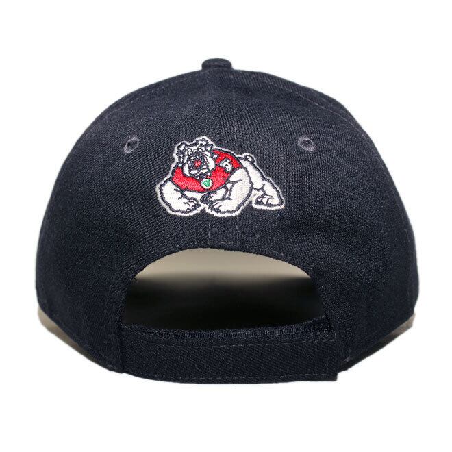 フロントにNCAA / 全米大学体育協会のフレズノステイト ブルドッグスのチームロゴ、左サイドにNEフラッグロゴ、バックにもチームロゴが刺繍されたモデル。