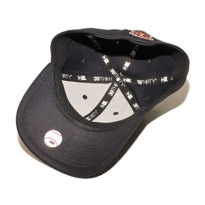 フロントにMLB / メジャーリーグのデトロイト タイガースのタイガーロゴ、左サイドにNEフラッグロゴ、バックにもタイガーロゴが刺繍されたモデル。
