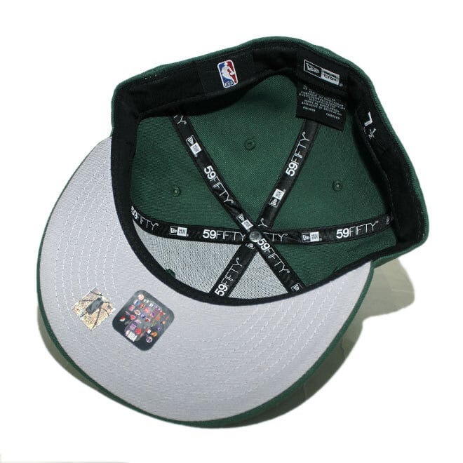 フロントにNBA / バスケットボールリーグのユタ ジャズのチームロゴ、左サイドにNEフラッグロゴ、バックにNBAロゴが刺繍されております。