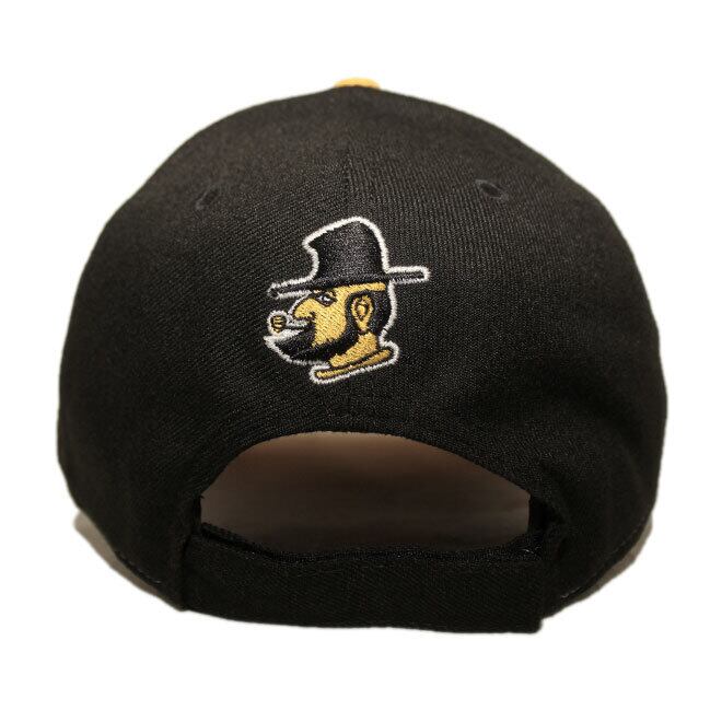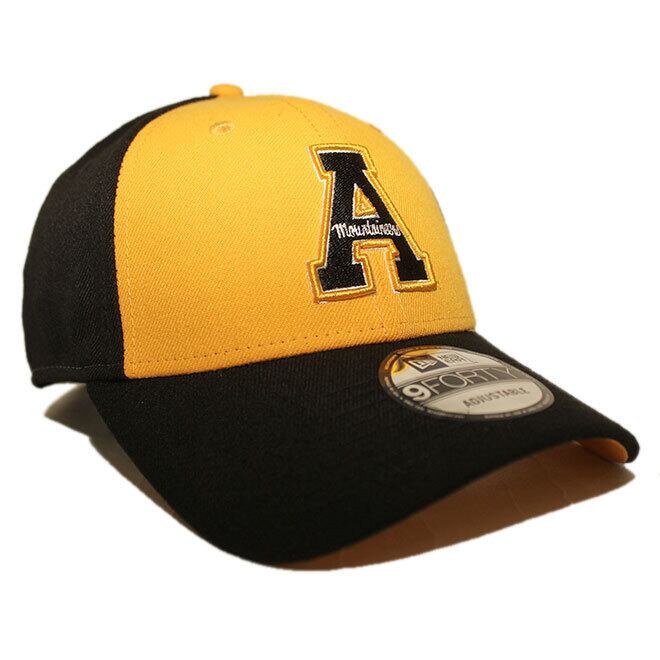 フロントにNCAA / 全米大学体育協会のアパラチアステイト マウンテニアーズのチームロゴ、左サイドにNEフラッグロゴ、バックにもチームロゴが刺繍されたモデル。