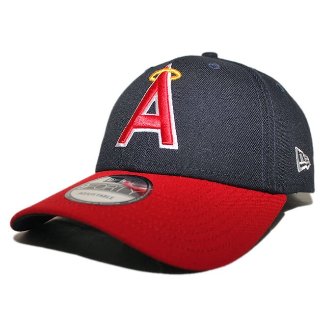 フロントにMLB / メジャーリーグのロサンゼルス エンゼルスのチームロゴ、左サイドにNEフラッグロゴ、バックに小ネームが刺繍されたモデル。
