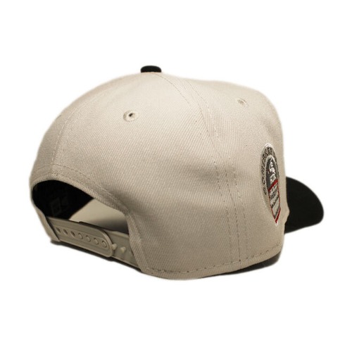 フロントにMLB / メジャーリーグのシカゴ ホワイトソックスのチーム名、左サイドにNEフラッグロゴ、右サイドにシカゴ・ホワイトソックスの本拠地として1910-90年まで使用されていたコミスキーパークのパッチが刺繍されたモデル。
