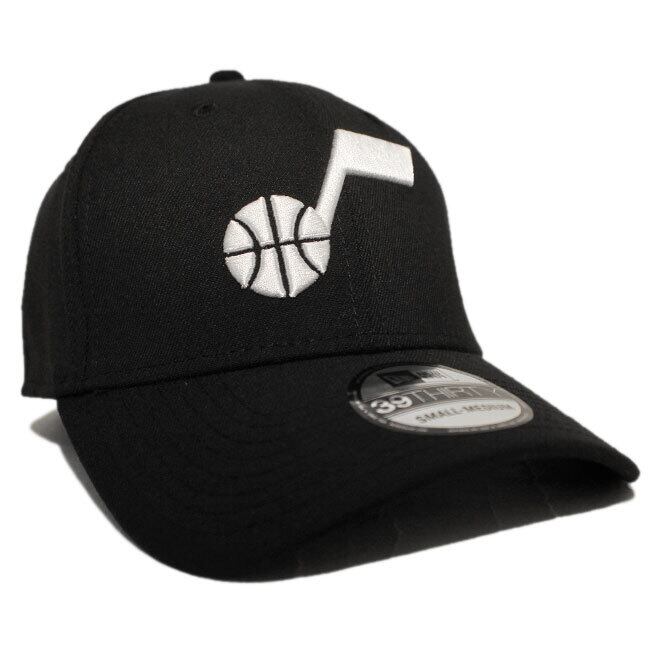フロントにNBA / バスケットボールリーグのユタ ジャズのチームロゴ、左サイドにNEフラッグロゴ、バックにNBAロゴが刺繍されたモデル。