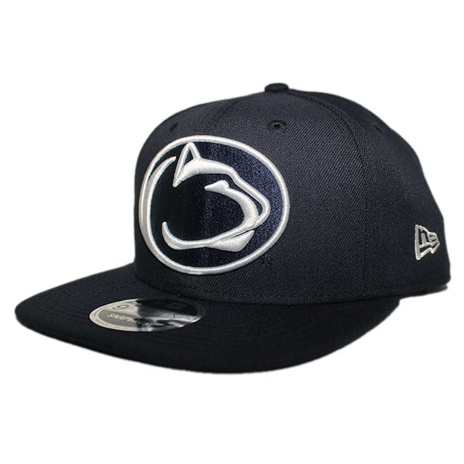 フロントにNCAA / 全米大学体育協会のペンステイト ニタニー ライオンズのチームロゴ、左サイドにNEフラッグロゴが刺繍されたスナップバックキャップ。
