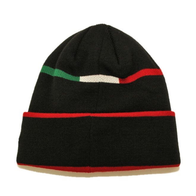 フロントにSERIE A / セリエAのACミランのチームロゴ、左サイドにNEフラッグロゴが刺繍されたニット帽。
