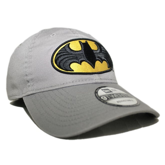 フロントにバットマンロゴ、左サイドにNEフラッグロゴが刺繍されたローキャップ。