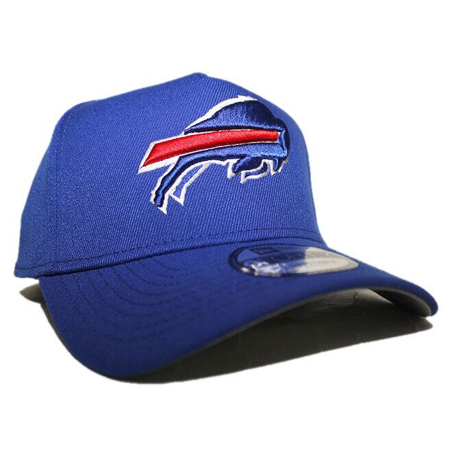 フロントにNFL / アメリカンフットボールリーグのバッファロー ビルズのチームロゴ、左サイドにNEフラッグロゴが刺繍されたモデル。